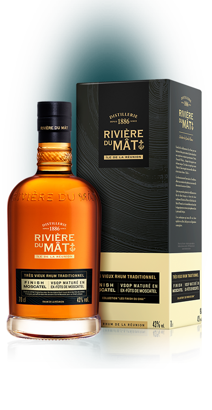 Le rhum très vieux traditionnel Rivière du Mât a été affiné dans des fûts de Moscatel, un vin naturellement doux dont le cépage éponyme se trouve principalement dans la péninsule ibérique.